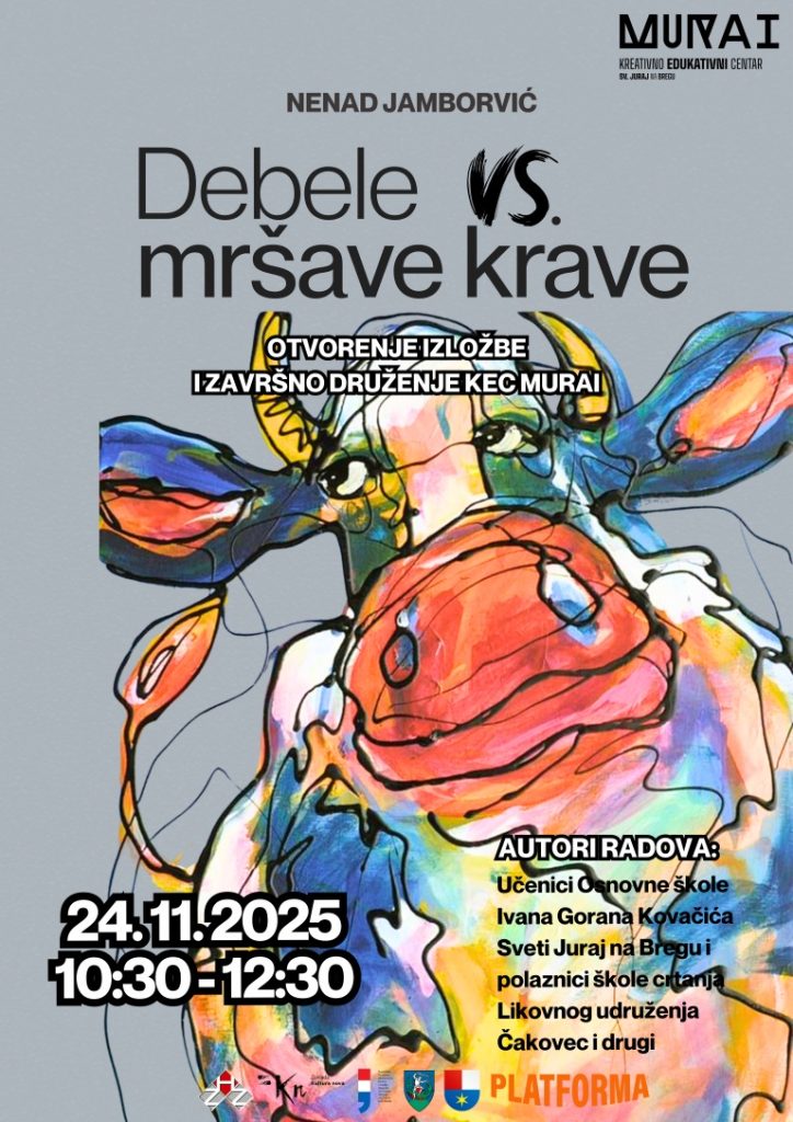 Krave – debele i mršave – u ovoj izložbi nisu samo životinje, nego ogledala ciklusa u kojima živimo. Ponekad smo puni, sigurni, stabilni, no ponekad stanjeni, oprezni, razvučeni između želja i mogućnosti. Upravo taj ritam – između obilja i oskudice – polazišna je točka izložbe „Mršave vs. debele krave“ koju konceptualno potpisuje Nenad