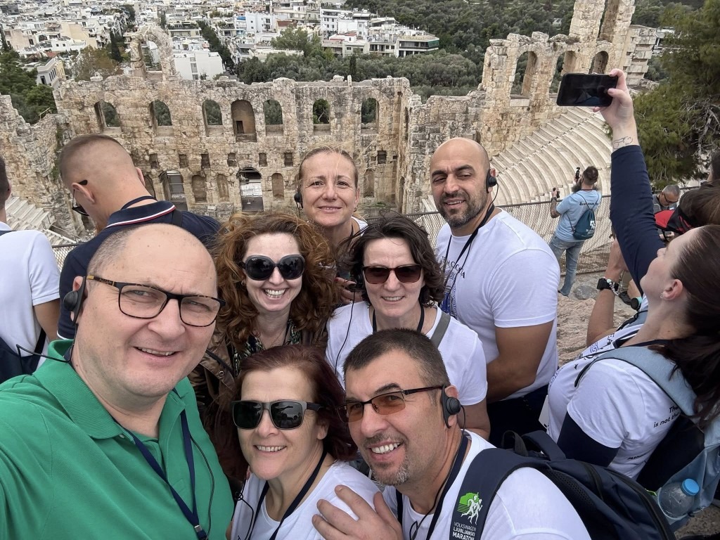 Vrhunac putovanja bio je nastup na autentičnom Atenskom maratonu, koji se održava na povijesnoj stazi od grada Marathona do Atene. Četvero članova udruge: Mirjana, Mirjana, Alen i Darko odlučilo se za utrku na 10 kilometara, dok su se Daniela, Lidija i Branko odvažili na cijelu maratonsku dionicu dugu 42 kilometra i 195 metara. Atenski maraton slovi kao jedan od najzahtjevnijih na svijetu zbog valovitog terena i čestih uspona, ali i kao jedan od najposebnijih zbog svoje povijesne simbolike.