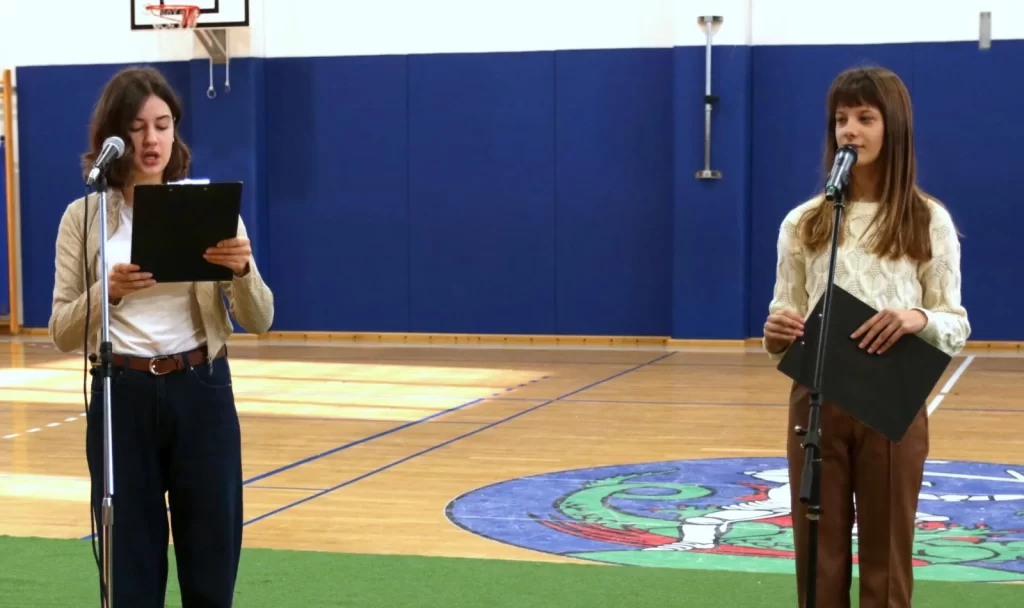 Naše drage bivše učenice, Milena Dominić i Katarina Meglić Ptičar, pročitale su svoje pjesme koje su napisale baš ovdje u ovim školskim klupama.