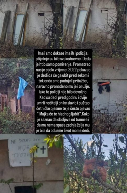 Imali smo dokaze ima ih i policija, prijetnje su bile svakodnevne. Deda je htio samo pomirenje. Promatrao nas je cijelo vrijeme. 2022 pokazao je dedi da ce ga ubit pred sekomi tek onda smo podnijeli pritužbe, naravno pronađeno mu je i oružje. lako to policiji nije bilo dovolino.