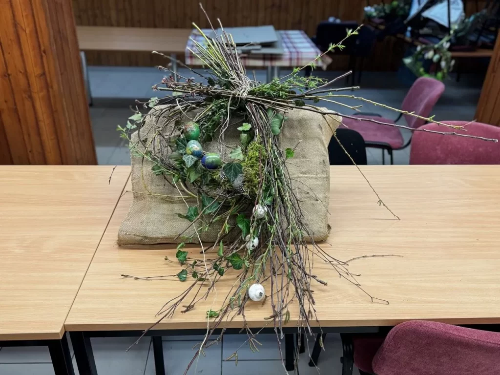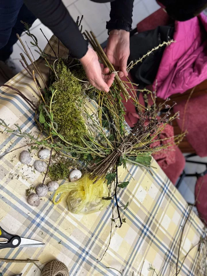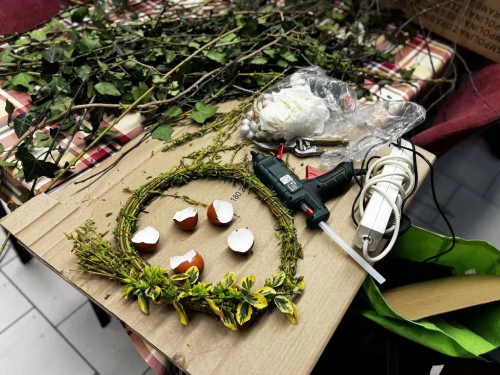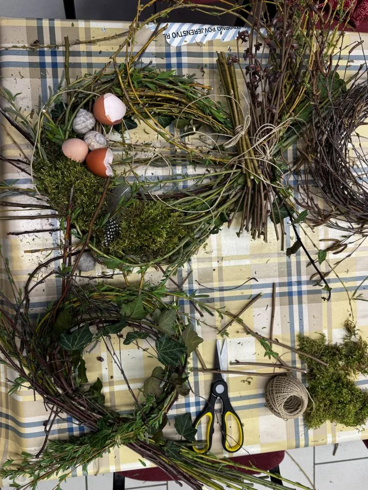Sudionice su unaprijed donijele raznolike prirodne materijale poput grančica, mahovine, ljuske jaja, dok su dodatni ukrasi s uskrsnim i proljetnim motivima upotpunili njihove kreacije. Spretnije ruke okušale su se i u šivanju nježnih cvjetića, kojima su dodatno ukrasile unikatne vjenčiće.