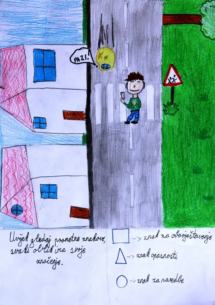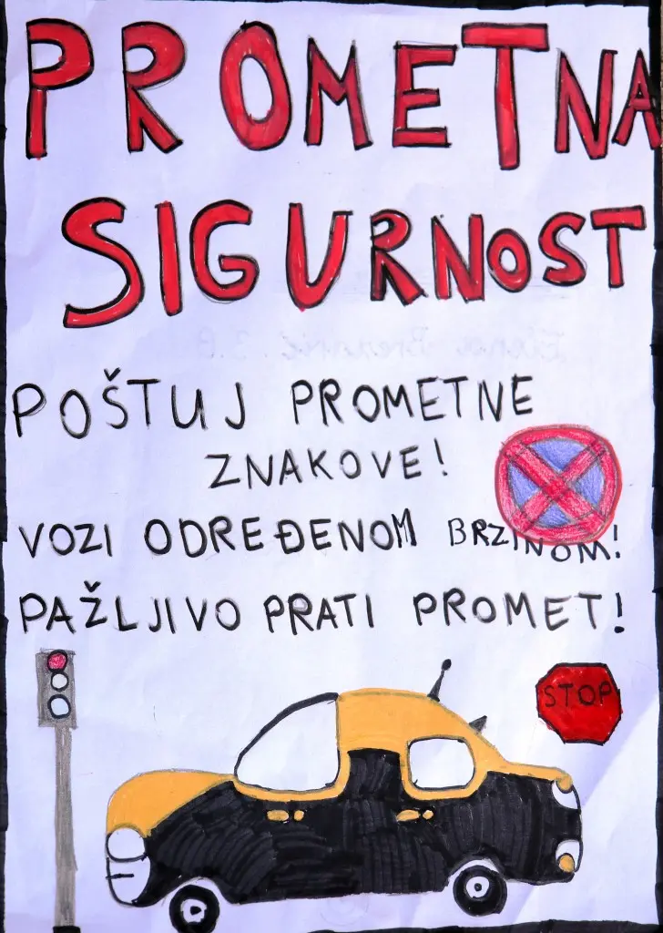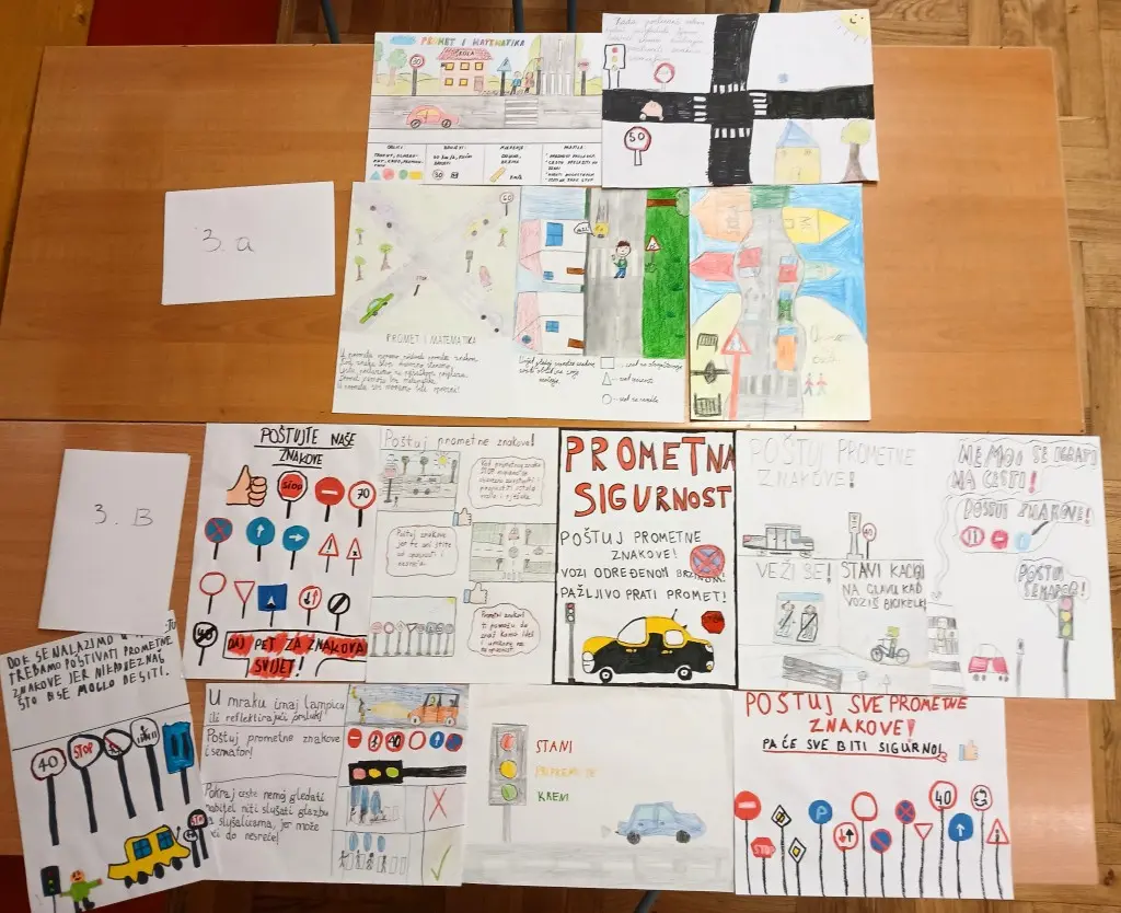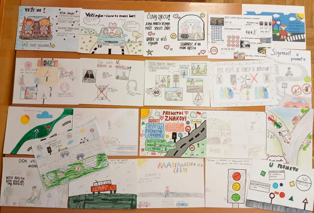 Najmlađi učenici, od 1. do 4. razreda, izrađivali su likovne radove na temu prometa. Učenici prvih i drugih razreda crtali su, dok su treći i četvrti razredi osmišljavali prometne poruke uz pripadajuće ilustracije.