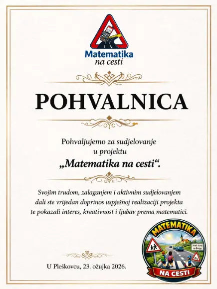 Vrijednost projekta prepoznata je i na nacionalnoj razini. Krajem ožujka projekt će biti predstavljen na državnom skupu ravnatelja srednjih škola i koordinatora za promet, gdje će „Matematika na cesti“ biti istaknuta kao primjer dobre prakse i inspiracija drugim školama.
