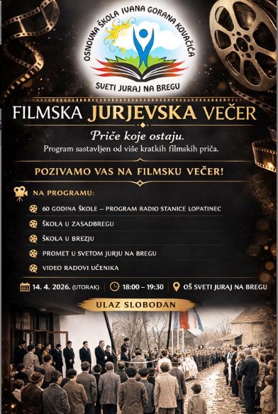 Program započinje u utorak, 14. travnja u 18 sati Jurjevskom filmskom večeri u prostorijama škole. Posjetitelji će imati priliku premijerno pogledati film povodom 60 godina škole – od njezina otvorenja 1965. godine do današnjih dana.Film donosi vrijedan arhivski materijal, uključujući video zapis iz 1991. godine autora Juraja Horvata te audio zapise nekadašnjeg školskog radija koji je počeo emitiranje 1967. godine.
