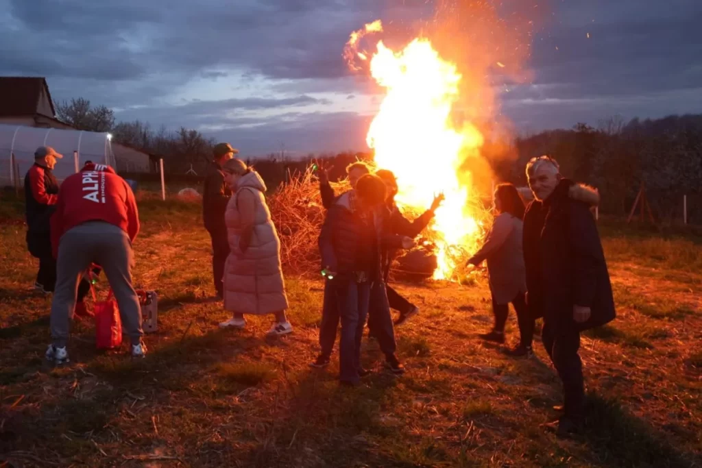 Mještani su se okupili kako bi zajedno obilježili Veliku subotu, a vatra je, kao i svake godine, bila središnje mjesto susreta i druženja.